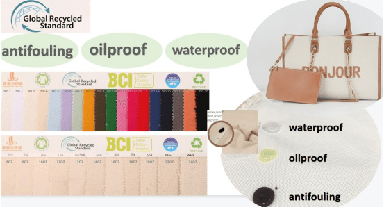 All our recycled canvas is GRS (Global Recycled Standard) certified. T/C certification is available for orders of 1,000 yards or more.