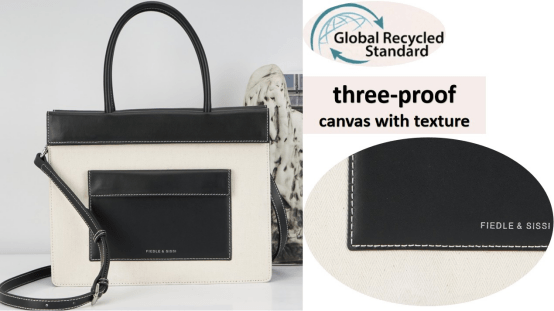 To put our sustainable vision into practice, we have developed a dedicated range of handbags featuring recycled canvas. As shown in the accompanying images, these designs thoughtfully combine eco-conscious materials with our signature craftsmanship, proving that style and responsibility can go hand in hand.